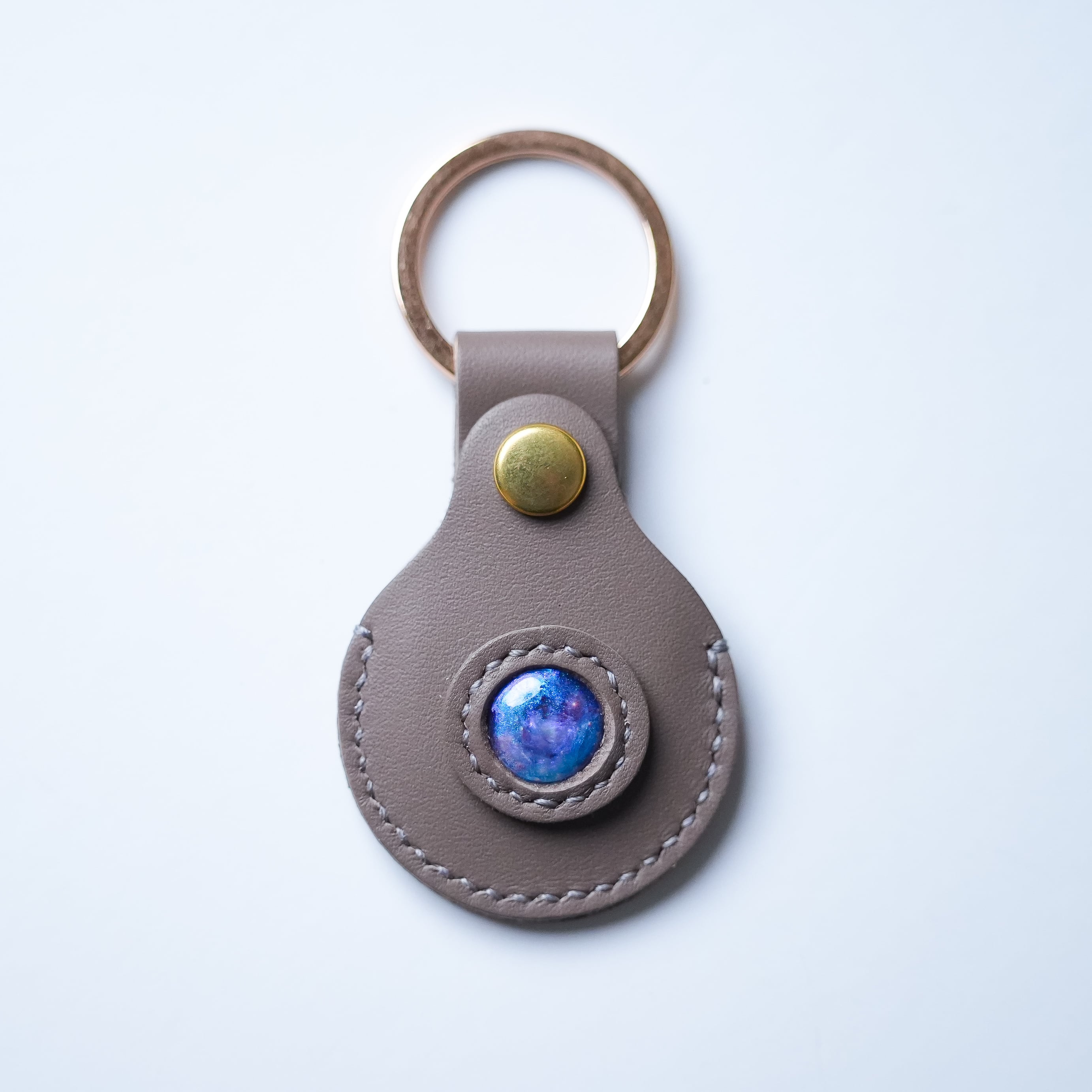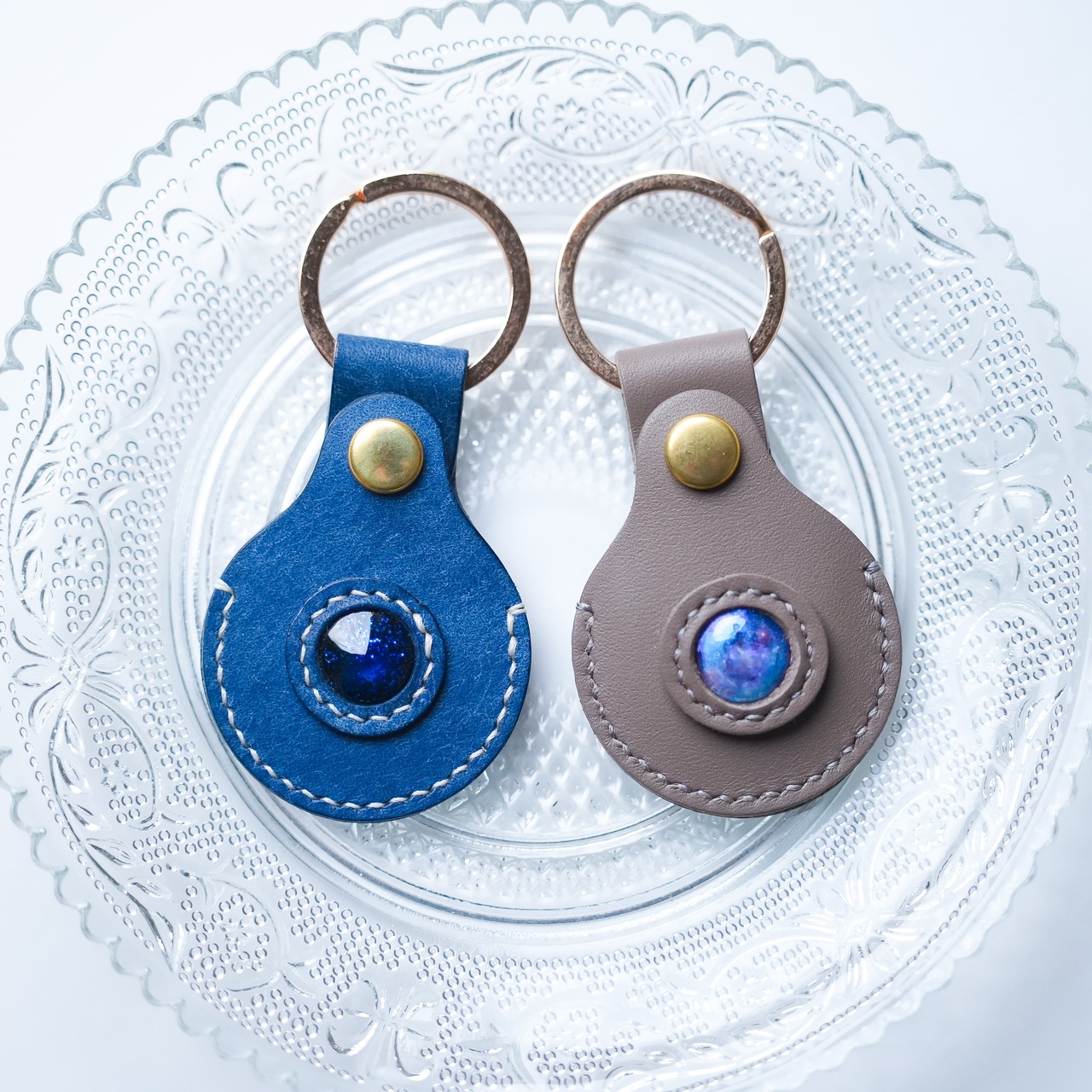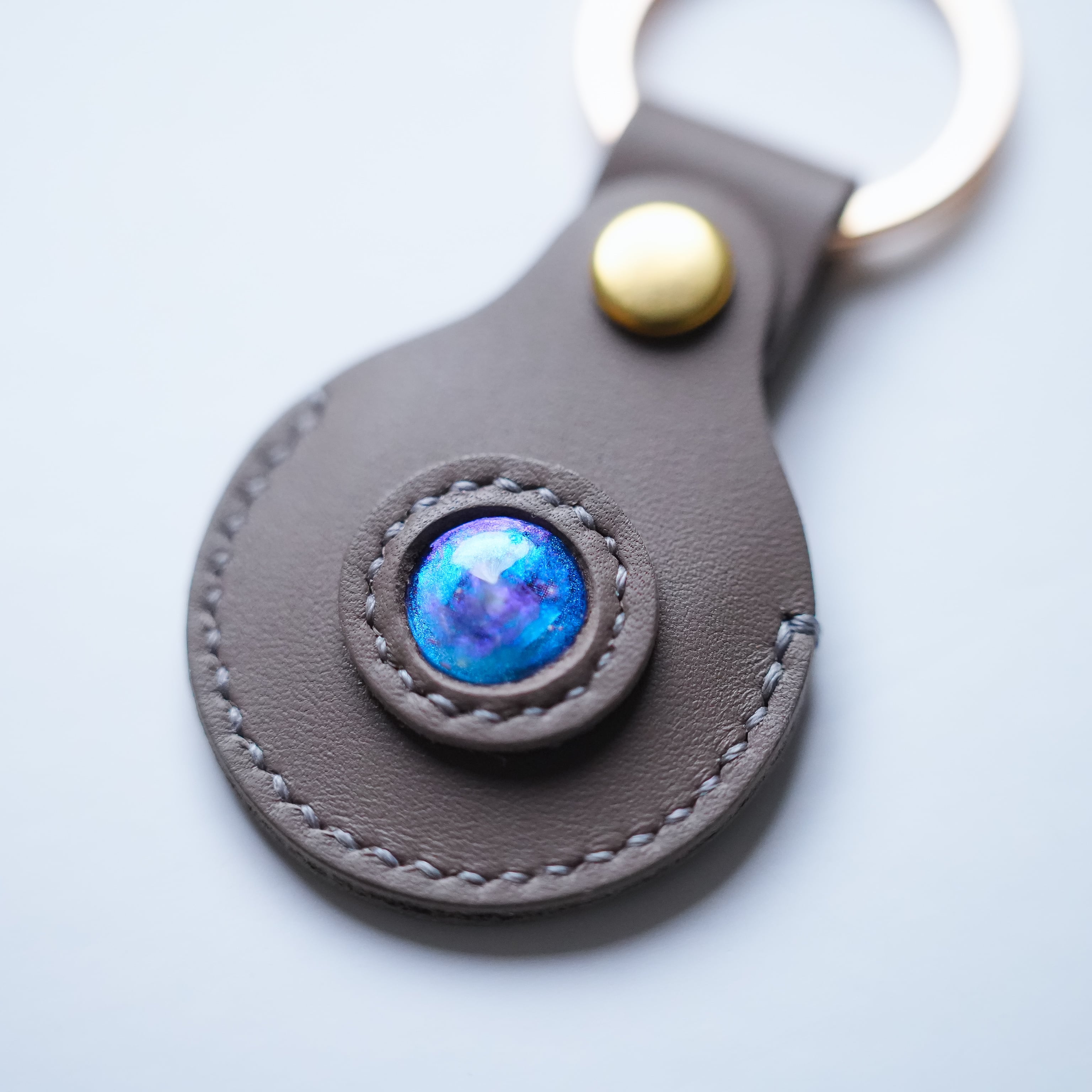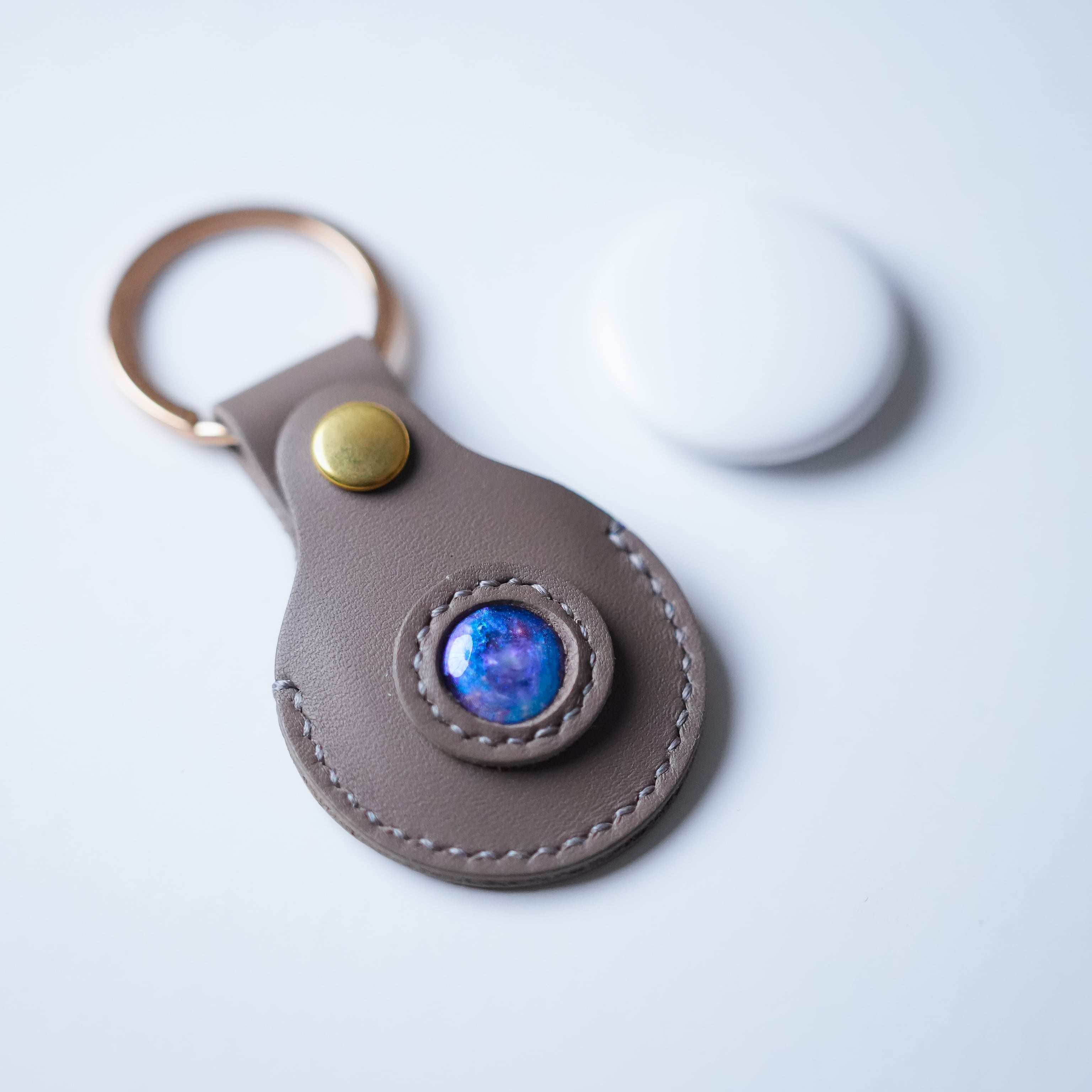AirTagケース レザーキーホルダー グレージュ オーロラクリスタル【名入れ可能】