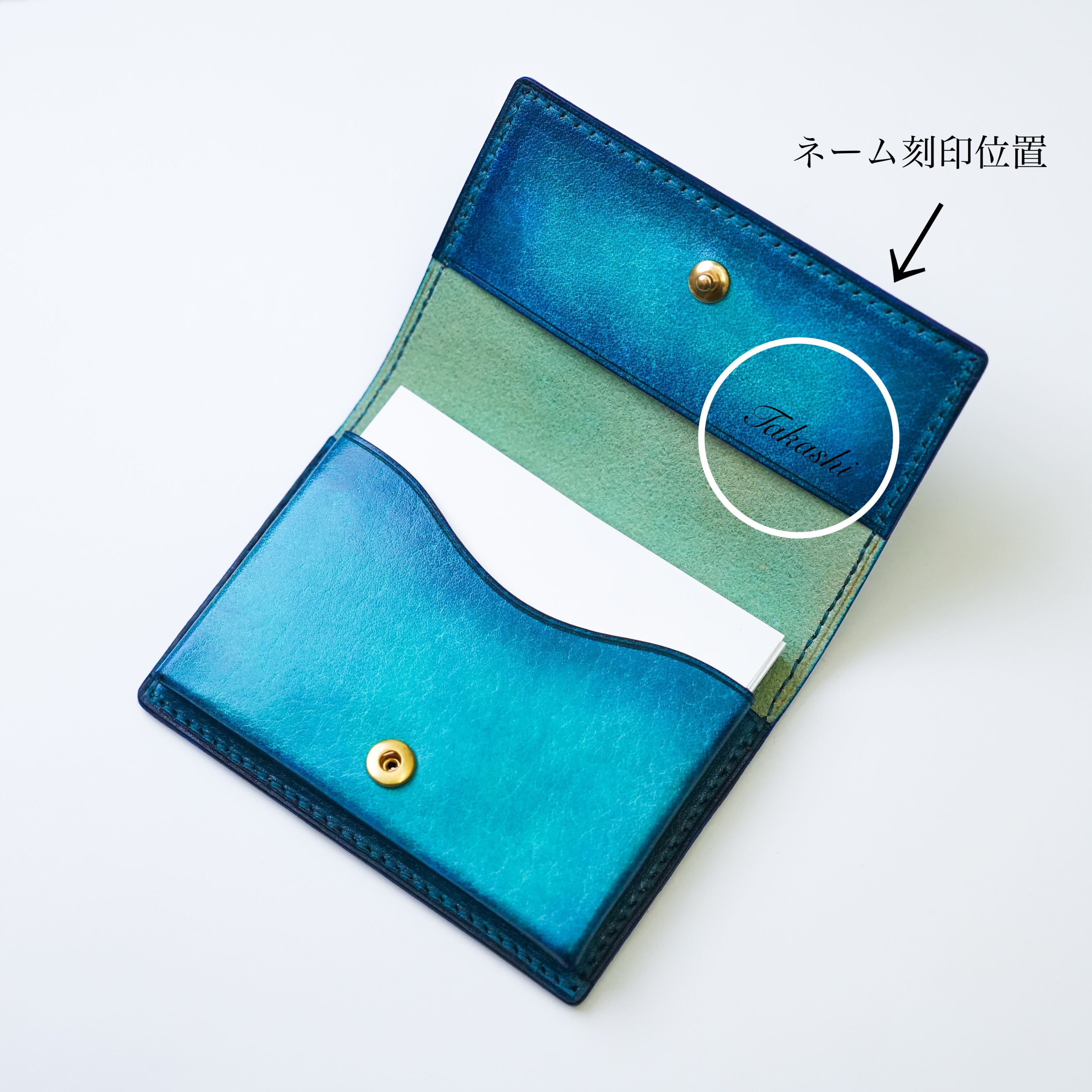 光り輝く宝石 オーロラダイヤ / ブルーグラデーションレザー名刺入れ〈ネーム刻印可能〉