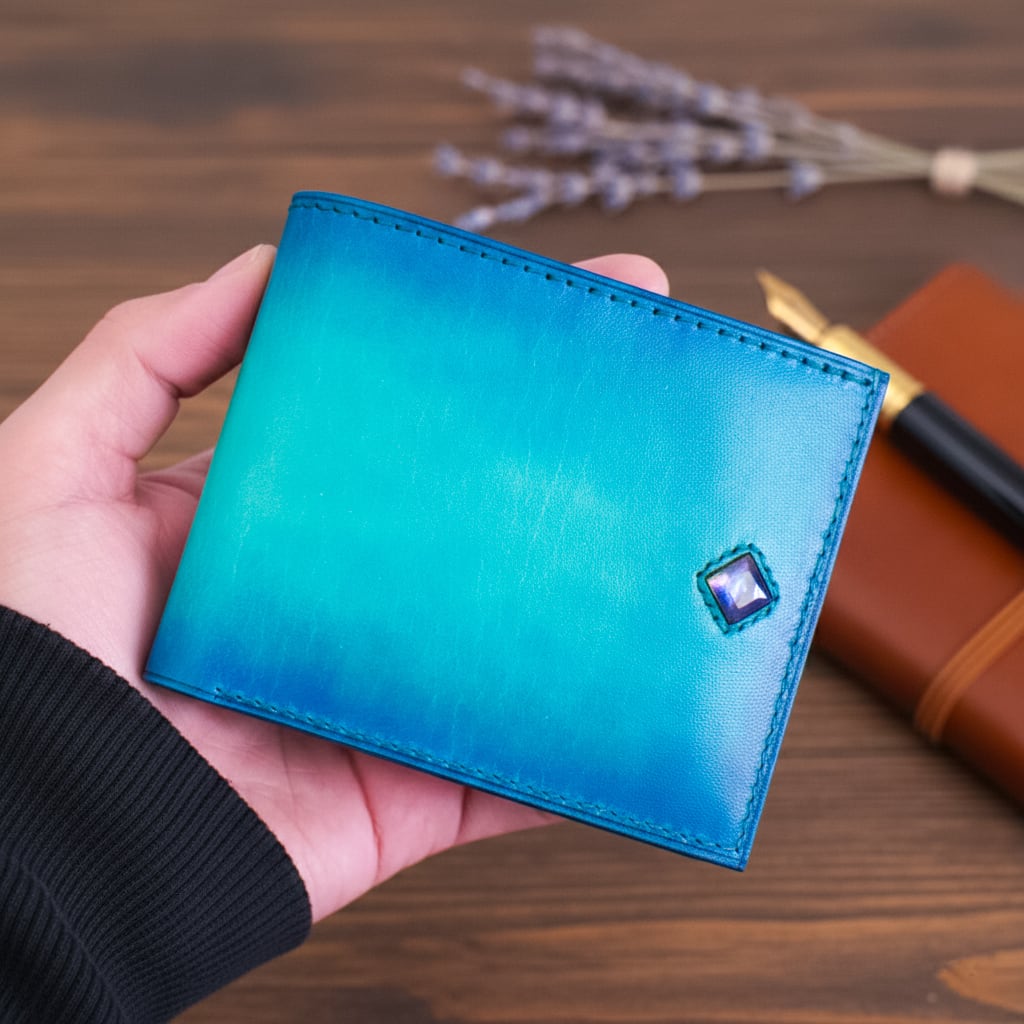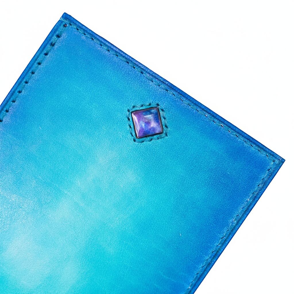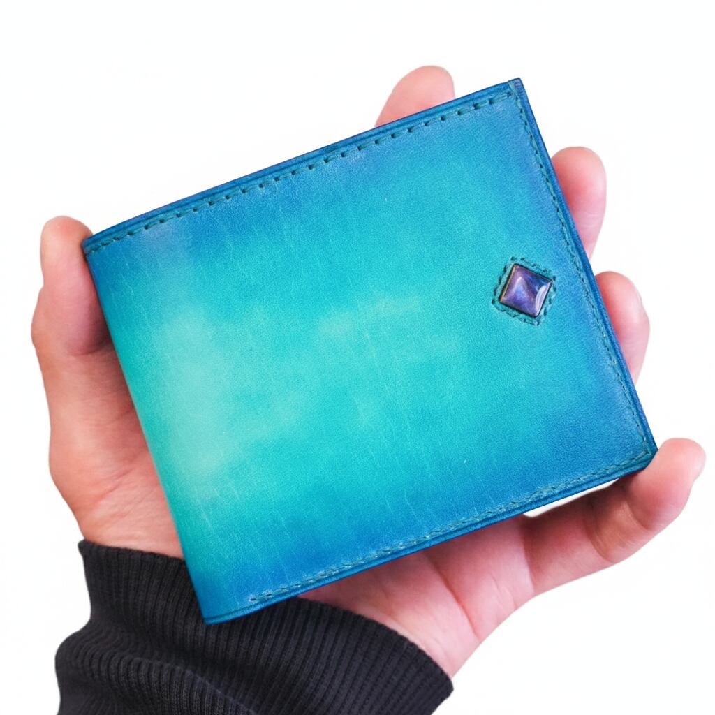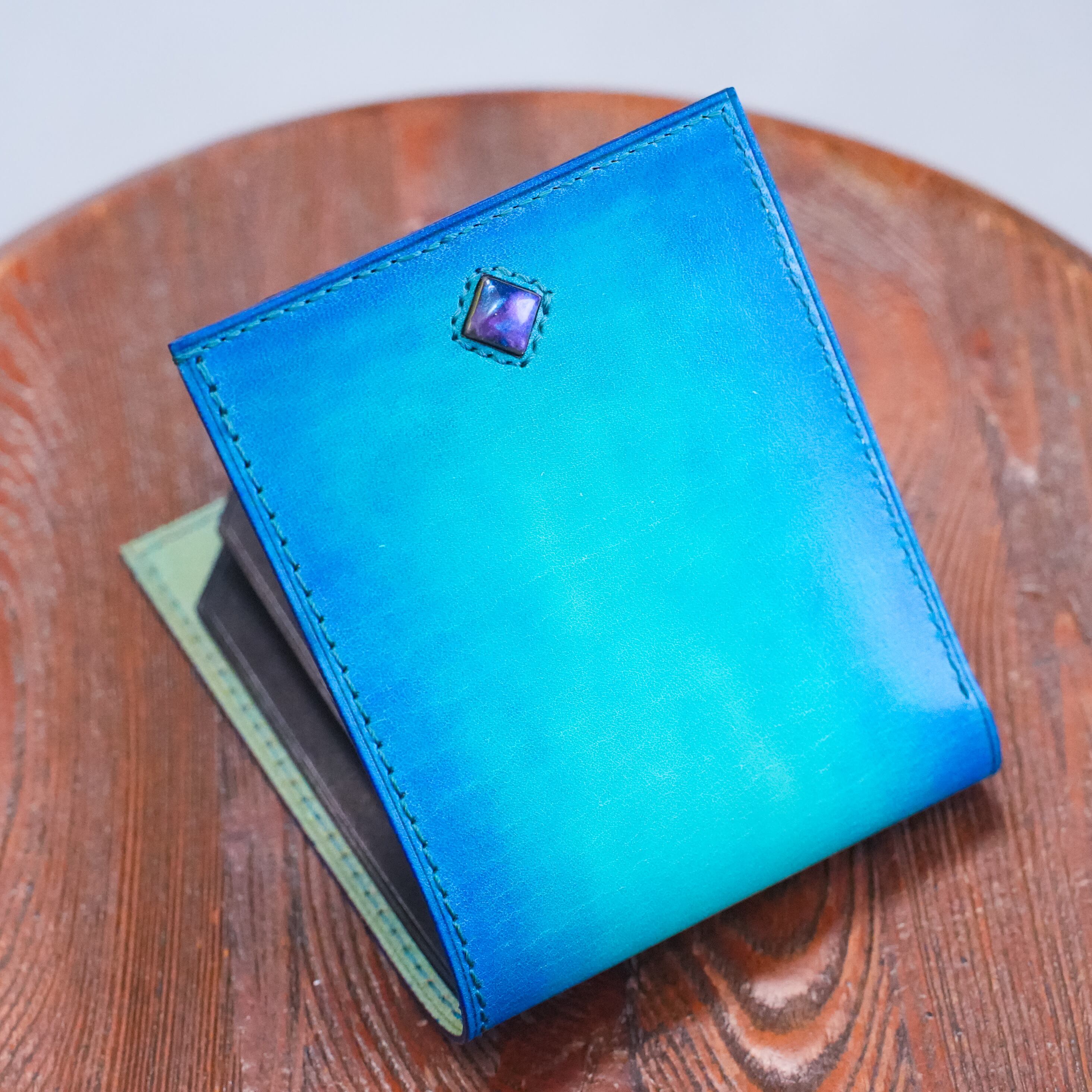 光り輝く宝石 オーロラダイヤ / ブルーグラデーション 二つ折り財布 ハーフウォレット