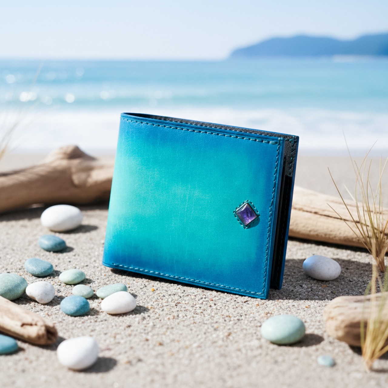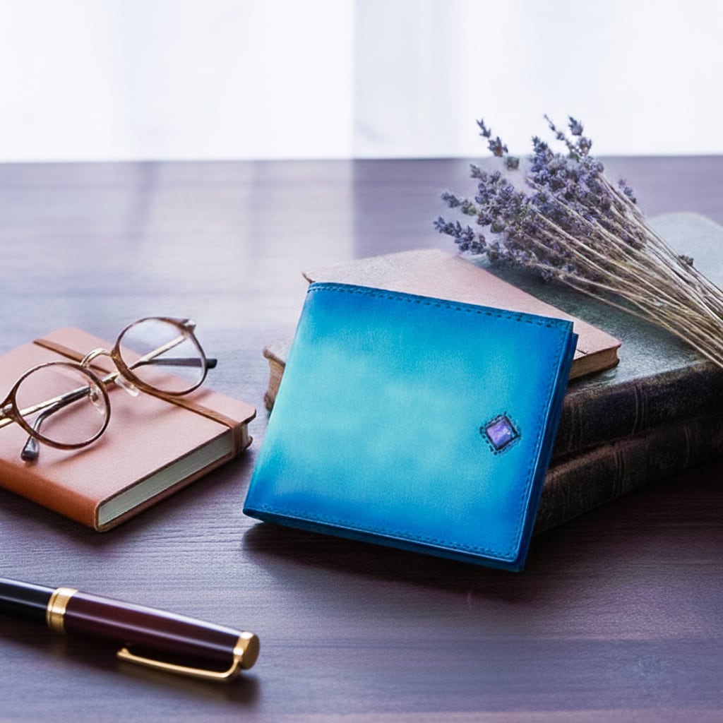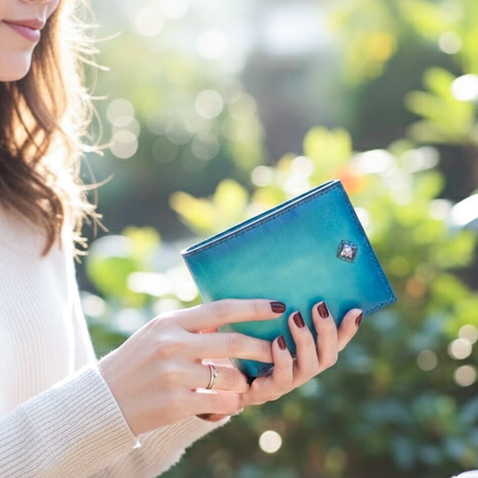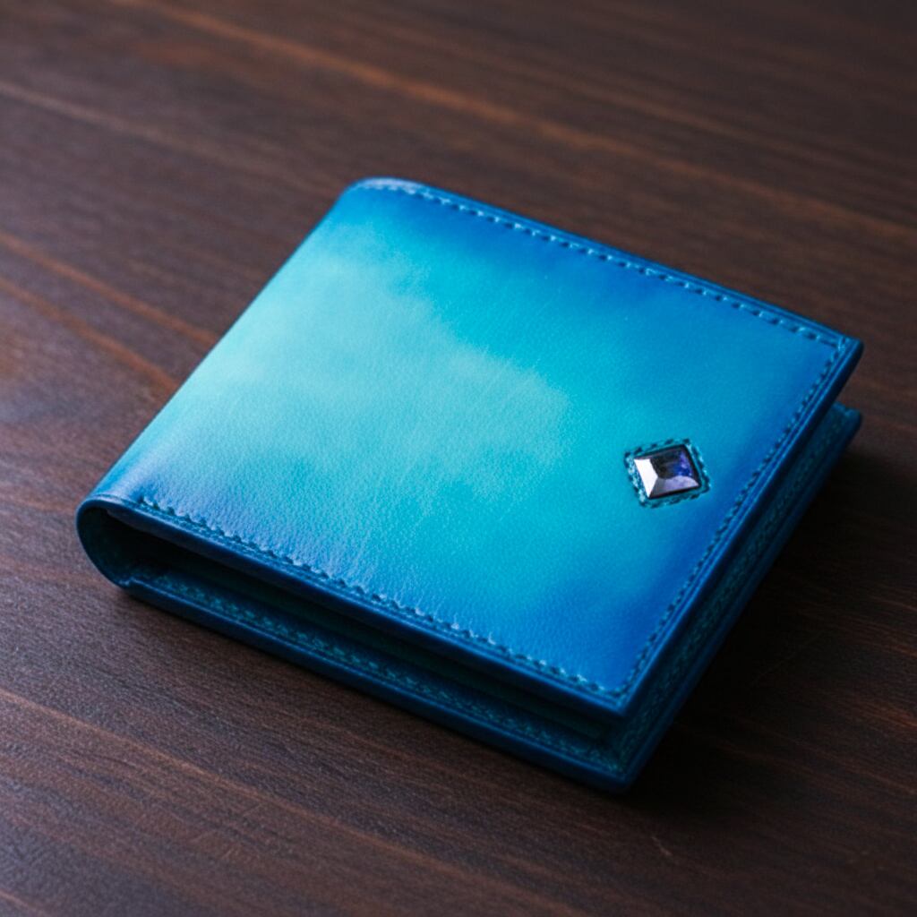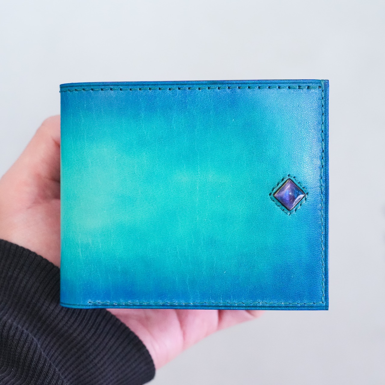光り輝く宝石 オーロラダイヤ / ブルーグラデーション 二つ折り財布 ハーフウォレット