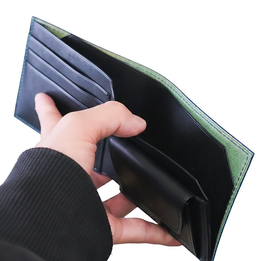 使いやすいように細かな設計がなされ、通常の二つ折り財布とは異なります。