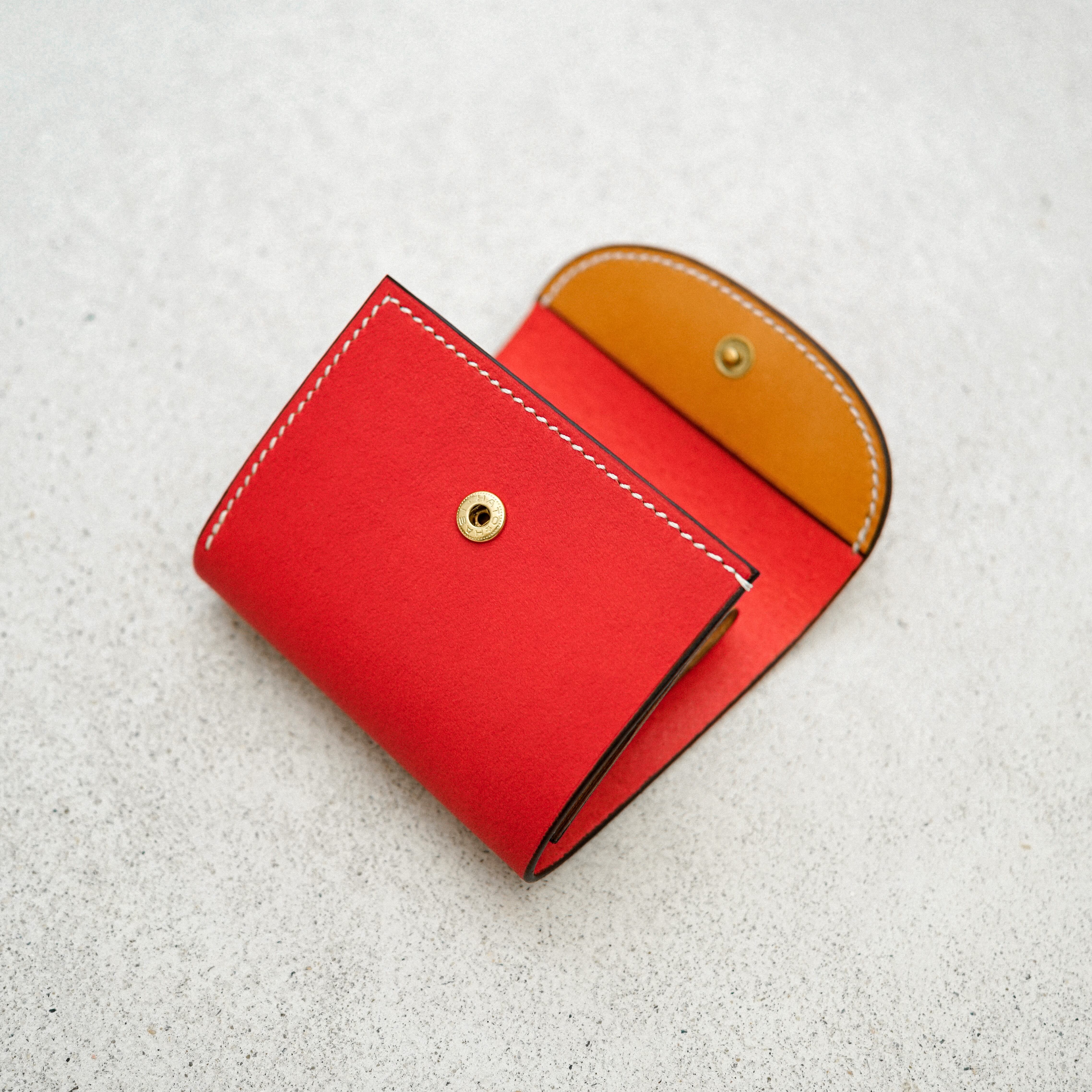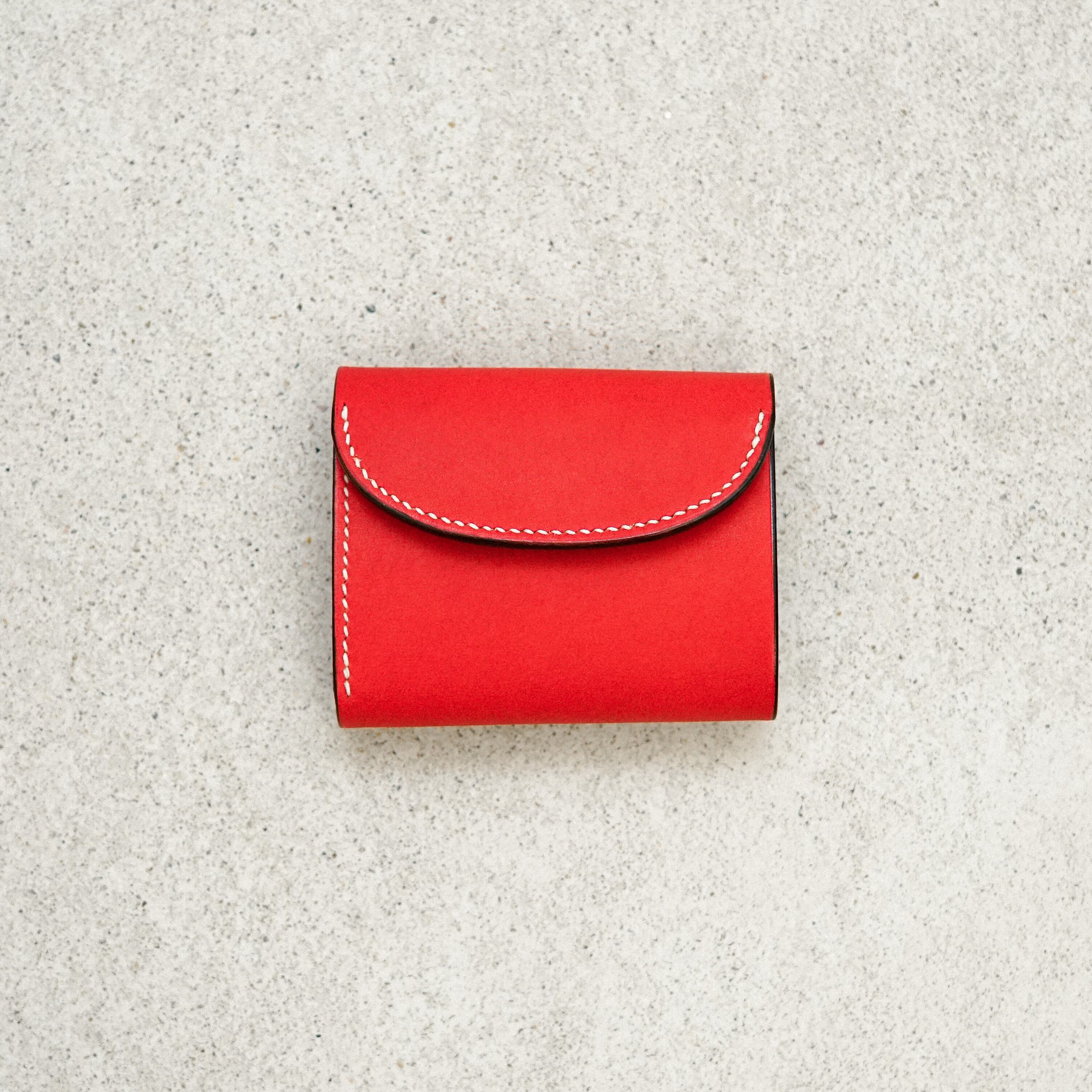 キメ細かな美しい吟面のレザーで鮮やかな発色が特徴のオイルレザー レッドカラーを使用したミニ財布です。
