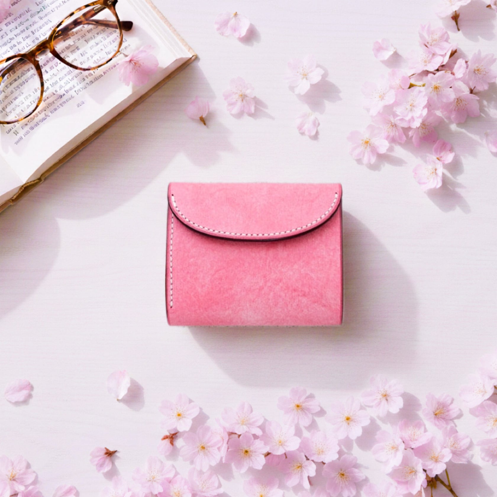 革はイタリアのアラスカレザー ピンクを使用。